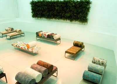 fern, textile, painted metal bedframes |